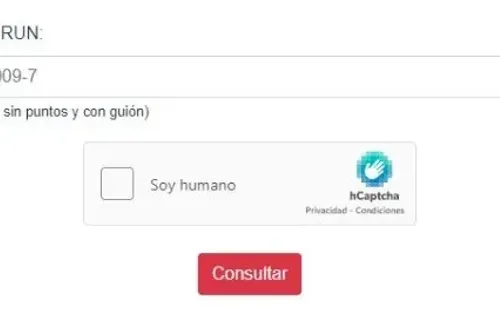 Una vez dentro, escribe tu RUT sin puntos y con guion, marca la casilla “Soy humano” y haz clic en “Consultar”.