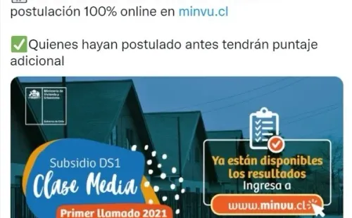 Para conocer los resultados del Subsidio DS1, debes ingresar al sitio web del Ministerio de Vivienda y Urbanismo (Minvu) o acceder directamente AQUÍ.