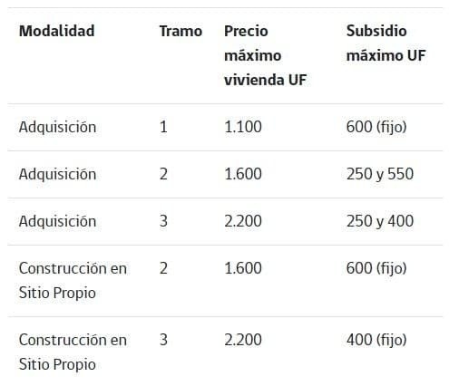 El subsidio cuenta con tres tramos para acceder a viviendas de hasta 1.100 UF, 1.600 UF y 2.200 UF.