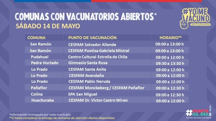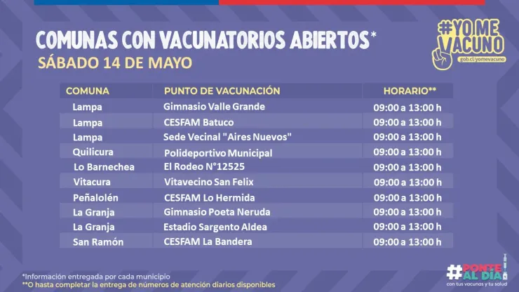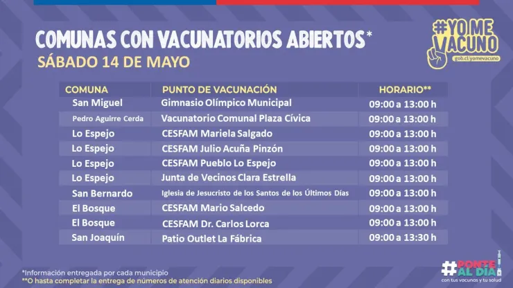 ¿Quévacunatorios estarán abiertos este sábado 14 de mayo? Conoce los horarios