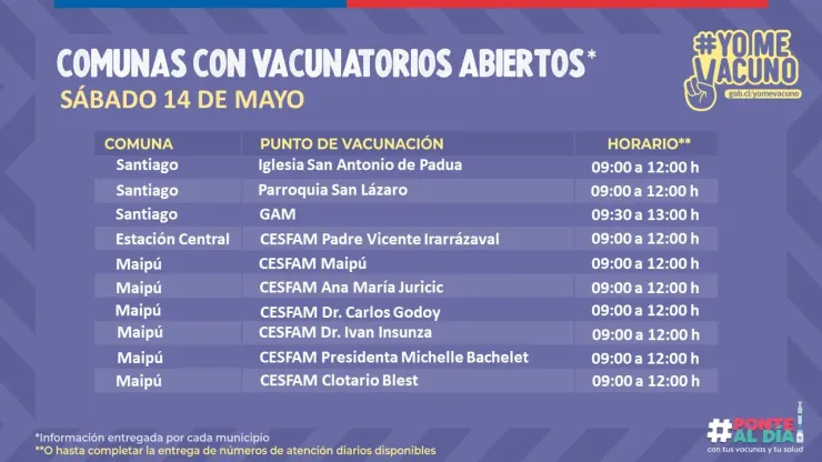 A continuación, te contamos más detalles de los vacunatorios que operan este sábado en la Región Metropolitana.
