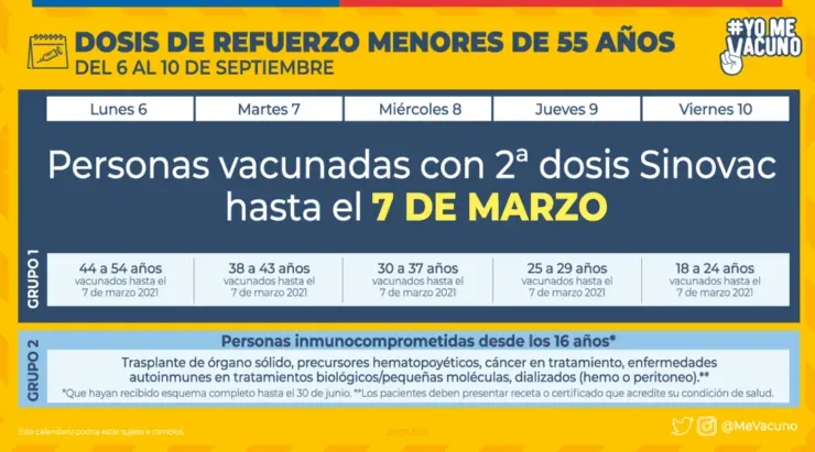 Menores de 55 años vacunados con Sinovac hasta el 7 de marzo de 2021: