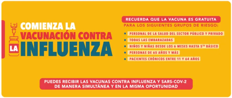 Además es gratuita para: personal de salud del sector público, embarazadas, niños y niñas desde los 6 meses hasta 5° básico, personas de 65 años y más, pacientes crónicos entre 11 y 64 años.