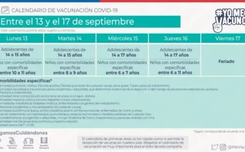 Entre el lunes 13 y el jueves 16 de septiembre se inicia la inoculación a niñas y niños que tengan alguna de las siguientes comorbilidades específicas:
