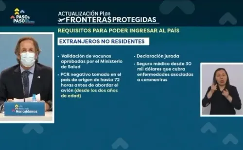 Se exige la validación de la vacuna anticovid, PCR negativo tomado en el país de origen con no más de 72 horas de anticipación desde los 2 años en adelante; declaración jurada C19 y un seguro médico desde los $30 mil dólares que cubra enfermedades asociadas al covid-19.