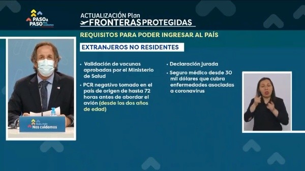 Por lo mismo se posterga la apertura de pasos fronterizos terrestres y se limita el ingreso a extranjeros no residentes que provengan de ciertos países, todo esto como consecuencia de la aparición de la nueva variante Ómicron.