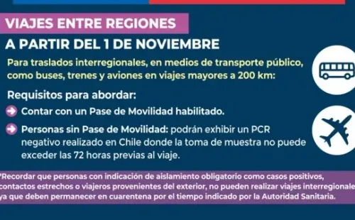 El documento se pedirápara viajar en transporte público, como aviones, buses y trenes.En caso de no tenerlo se debe presentar un pcr negativo realizado en Chile con máximo 72 horas previas al viaje.
