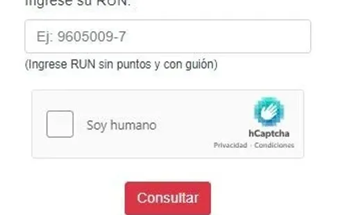 Solo deberás ingresar tu RUT sin puntos y con guion, llenar la casilla “Soy humano” y hacer clic en “Consultar”.