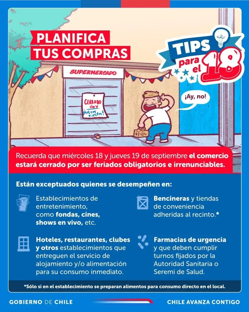 Comenzó el periodo de celebración de Fiestas Patrias y los chilenos comienzan a organizar las compras y preparativos para la época dieciochera, y una de las cosas más importantes a considerar es el horario de los supermercados.