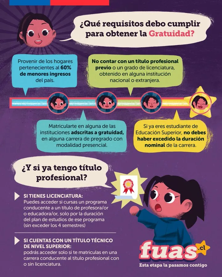 De esta manera, podrás optar al beneficio de gratuidad si postulas desde el 15 de febrero de 2024 y cumples con los siguientes requisitos: