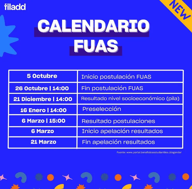 En el caso de que no participaste del primer periodo de postulación al FUAS podrás participar de la segunda etapa cuyas fechas claves te mostramos a continuación:
