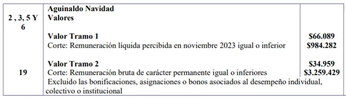 El monto anunciado por el acuerdo, para el Aguinaldo de Navidad que recibirán los trabajadores del sector público será el siguiente según el sueldo de cada funcionario: