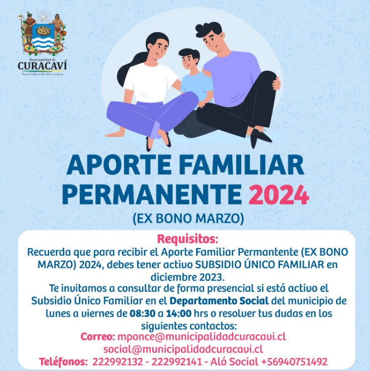 Cabe recordar que el año pasado se entregó un monto de $59.452 pesos por carga familiar.