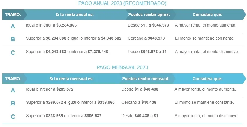 Por otro lado, quienes eligen la modalidad anual, reciben el primer pago dos meses después de la postulación. Por ejemplo, si postulas en enero de 2023, recibirás el primer pago en mayo de 2023.