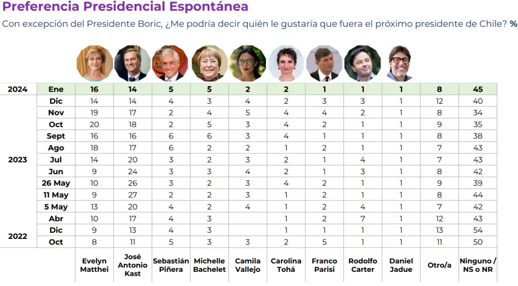 Como admitió el propio Escalona, el actual ministro de Hacienda no ha surgido en casi ninguna encuesta como un nombre para ser candidato presidencial. Por ejemplo, en la última Encuesta Cadem de enero de 2024 no aparece Mario Marcel dentro de las menciones espontáneas para ser presidente.