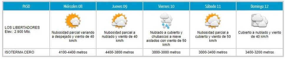 Puedes monitorear el tiempo del Paso Los Libertadores para los próximos días en la página web de la Dirección Meteorológica de Chile (www.meteochile.gob.cl).