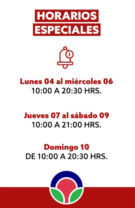 - Anunció horarios habituales para un día festivo entre las 9:00 y las 21:00 horas, aunque estos pueden variar en cada local, por lo que debes revisar cada tienda AQUÍ.