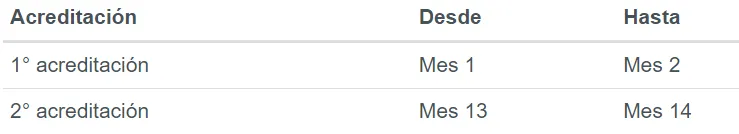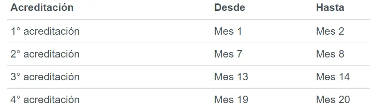 El calendario de acreditación es el siguiente (donde el Mes 1 corresponde al mes de activación del Bono de Protección):