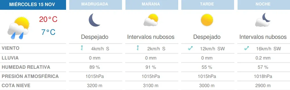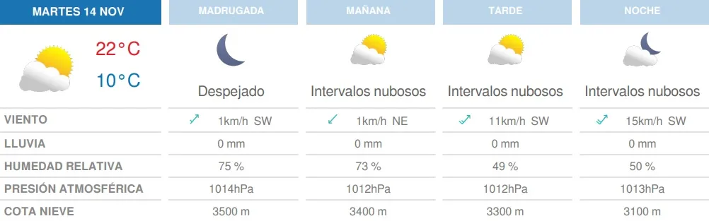 El jueves subirán solo un poquito las temperaturas, con una máxima de 22°C y una mínima de 6°C. Para ese día no se pronostican lluvias.