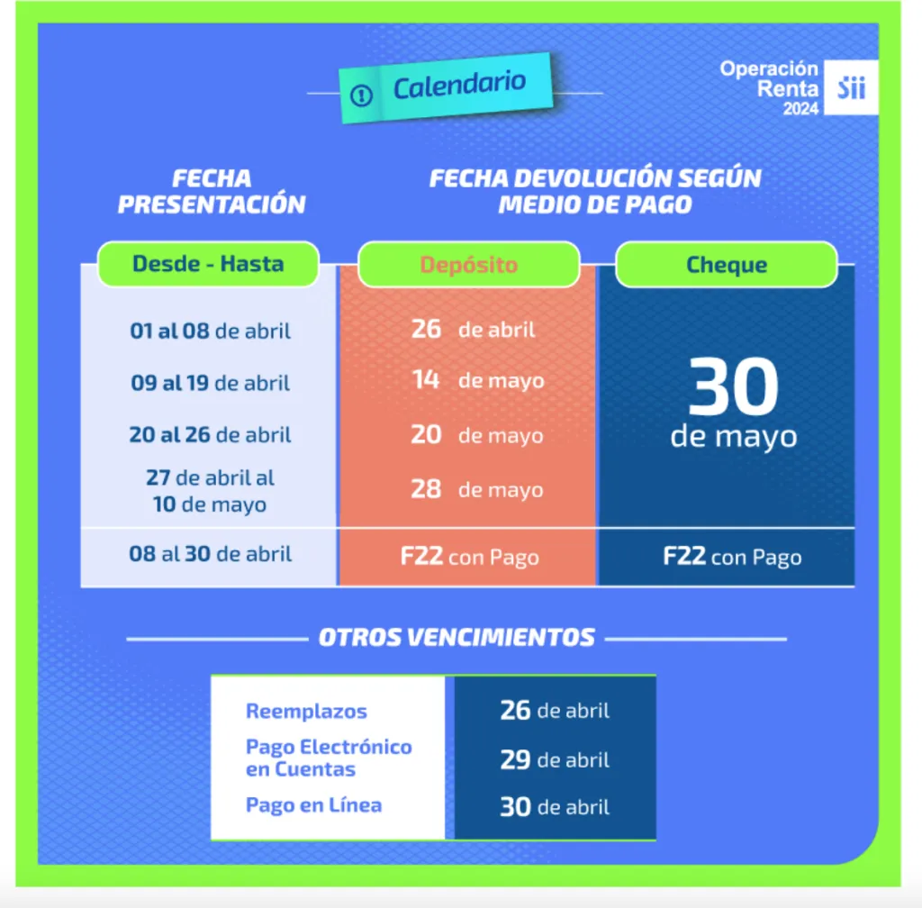 Todos los años la Declaración de Renta suele hacerse entre el 1 al 30 de abril, según las fechas confirmadas por el Servicio de Impuestos Internos (SII) y que seguirán siendo válidas para este 2024.