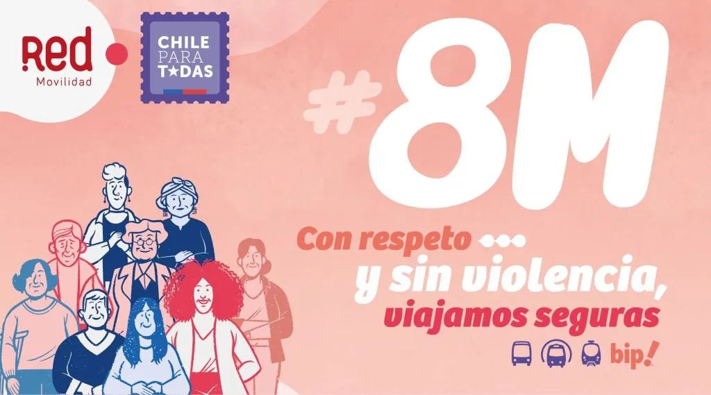 La tarjeta Bip! destaca por un vistoso color rosado, junto a un mensaje en la parte central de la tarjeta que dice “8M Con respeto y sin violencia, viajamos seguras’’, además de los logos de Red Movilidad y Chile para Todas, plan de Gobierno que según su sitio web busca mejorar las condiciones de vida de todas las mujeres del país.