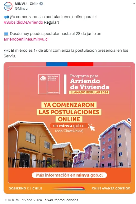 La postulación online al Subsidio de Vivienda parte este 15 de abril, mientras que el trámite de forma presencial se puede hacer desde el miércoles 17 de abril hasta el 28 de junio.