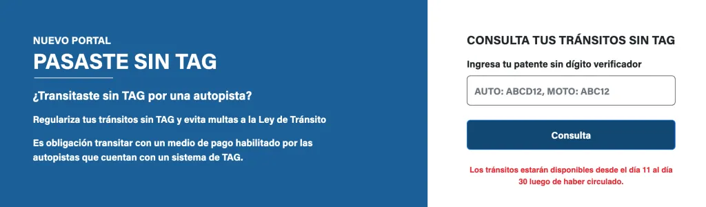 Es importante señalar que este pago se realiza después de haber transitado por las autopistas de la Región Metropolitana y la compra de este pase solo está disponible en línea a través del sitio web pasastesintag.cl.