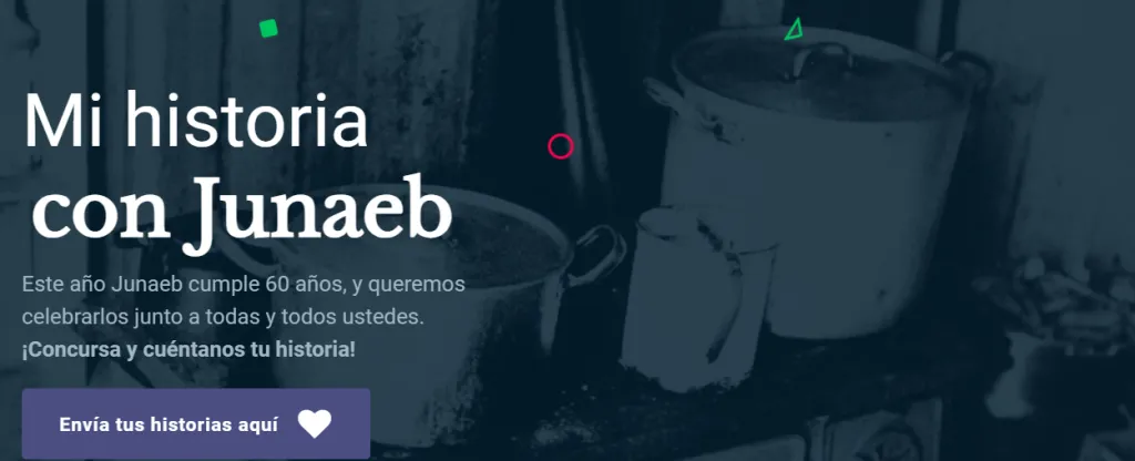 Tal y como lo explica su directora nacional, Camila Rubio Araya: “Millones de personas han sido beneficiadas por alguno de nuestros programas en estas seis décadas de vida o han trabajado ligadas a Junaeb. En este aniversario queremos conocer esos relatos, esas anécdotas únicas y divertidas, esas historias que cambiaron vidas, que grafican como Junaeb se ha transformado en un soporte fundamental para millones de estudiantes”.