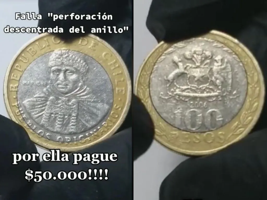 La moneda de $100 que buscan los coleccionistas es la que tiene una falla denominada “perforación descentrada del anillo”.