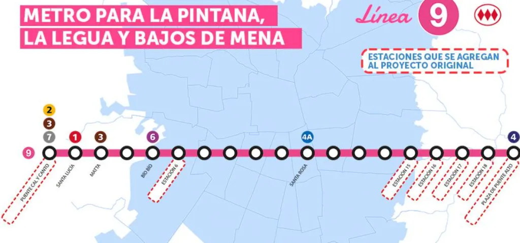 El Gobierno presentó el trazado de la nueva Línea 9, gracias a la cual, las comunas de La Pintana, sector Bajos de Mena y La Legua tendrán por primera vez acceso al Metro de Santiago. Este servicio marca un gran hito, ya que una de sus estaciones conectará con hasta cuatro líneas de este transporte público.