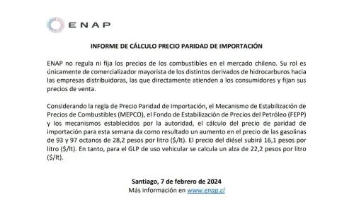 Los informes de ENAP con los respectivos cambios (alzas o bajas) serán publicadas el día miércoles anterior a las fechas mencionadas.