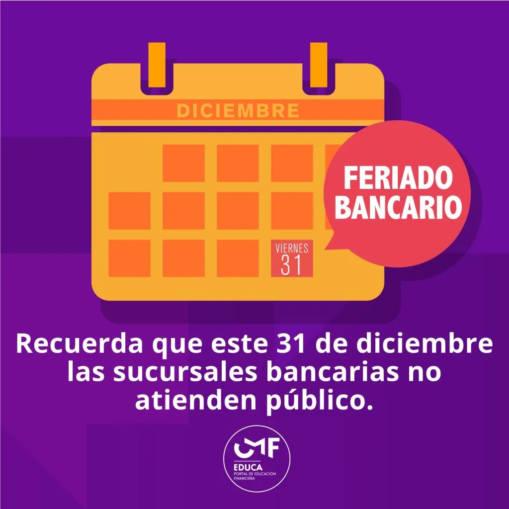 Esto significa que este domingo 31 de diciembre no es un día feriado de carácter nacional, como lo son Navidad o Año Nuevo que además son irrenunciables. En realidad este día festivo solo está enfocado en los bancos, como lo dice su nombre.