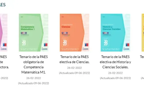 Si quieres revisar el temario de cada una de las pruebas de la PAES, puedes hacerlo ingresando AQUÍ, y haciendo clic en el temario que desees ver. Una vez que lo pinches, se abrirá y lo podrás descargar.