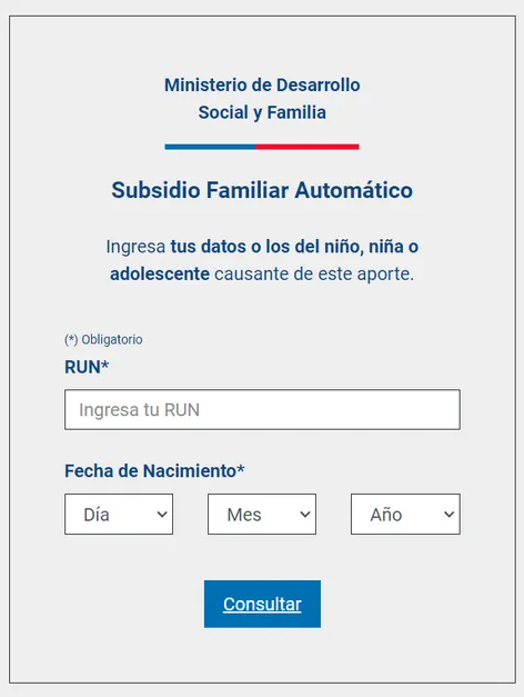 Ingresa aquí los datos del menor de edad que creas que puede ser beneficiario del SUF para saber si le corresponde el pago