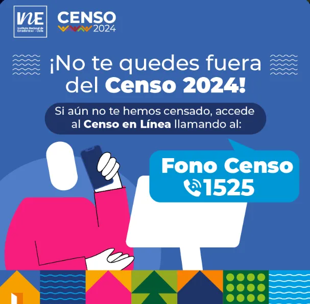 - Comunicándose al “Fono Censo”, llamando al 1525 de lunes a domingo entre las 9:00 y hasta las 21:00 horas para acceder al Censo en Línea.