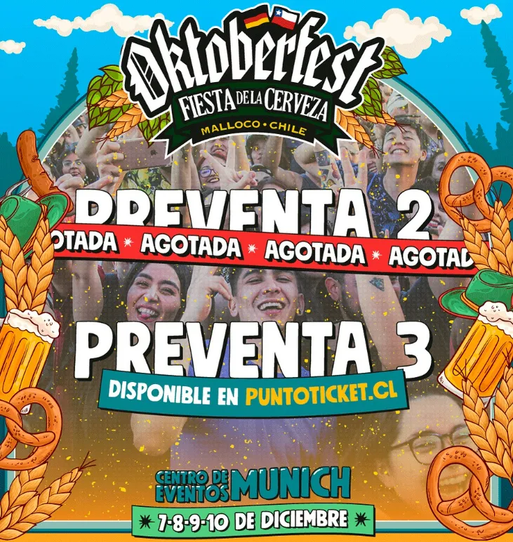 Para asistir al Oktoberfest Chile 2023 debes aprovechar desde ya la preventa 3 que se encuentra disponible hasta agotar stock. En caso contrario deberás comprar tus tickets de entrada general, o incluso puedes adquirir la experiencia Vip. A continuación revisa los valores para cada día: