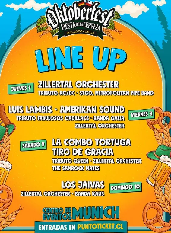 Para este Oktoberfest 2023, los grupos y artistas invitados son los siguientes para cada jornada del evento: