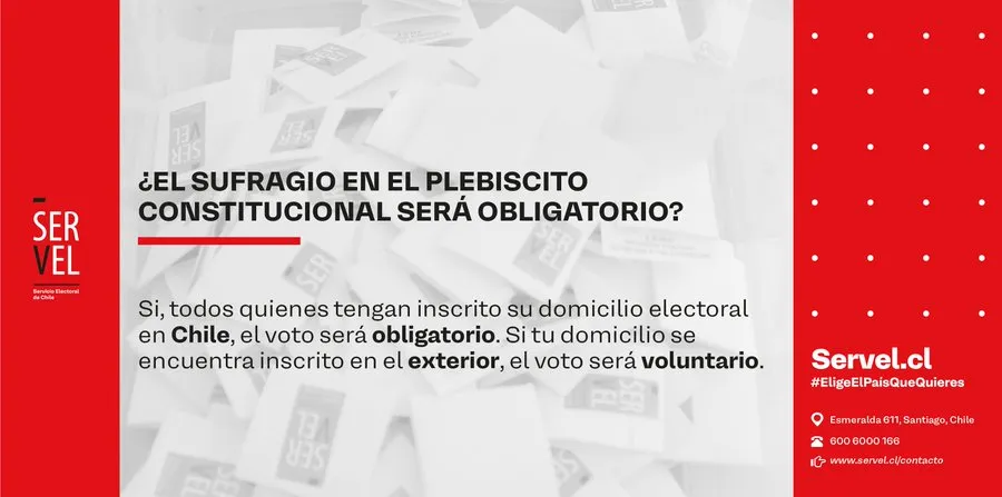 Como viene siendo costumbre, estas elecciones serán obligatorias para toda la población que está habilitada para votar y tenga domicilio electoral en Chile. En caso de no cumplir con esta obligación el Servel te denunciará y posteriormente recibirás una multa.
