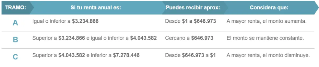 Te recordamos que el pago anual 2023 del bono “BTM” del Sence se paga de acuerdo a las rentas brutas percibidas por la beneficiaria ese año, y que este proceso de cálculo te puede incluir en alguno de estos tres tramos de pago: