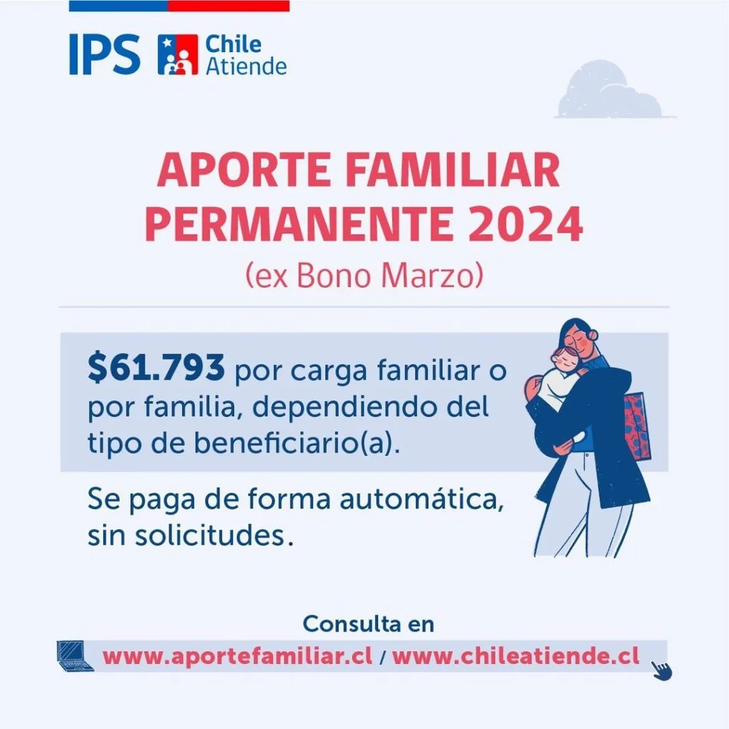 Si deseas conocer si recibiste o recibirás el Aporte Familiar Permanente 2024, te invitamos a que ingreses al siguiente link de ChileAtiende y rellenes con tu RUN y Fecha de Nacimiento.