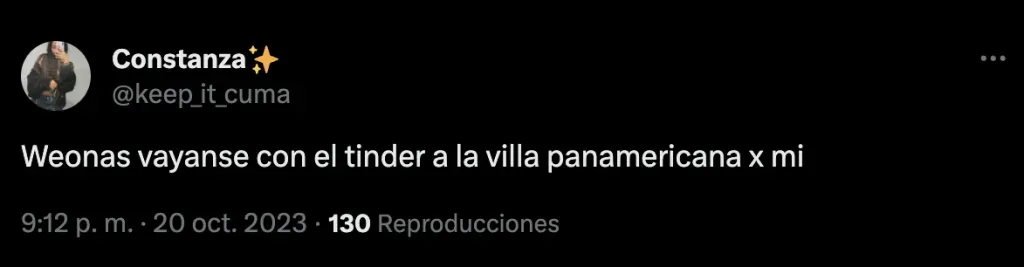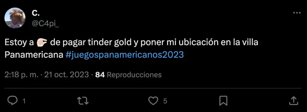 Esto porque, todo en tono de humor por supuesto, en Twitter empezó a masificar la idea de que sería bueno ocupar la aplicación en Cerrillos, más específicamente en la Villa Santiago 2023 de los Panamericanos o “Villa Olímpica” donde cientos de deportistas jóvenes y con todo el entusiasmo de conocer lo mejor de Chile se están alojando.