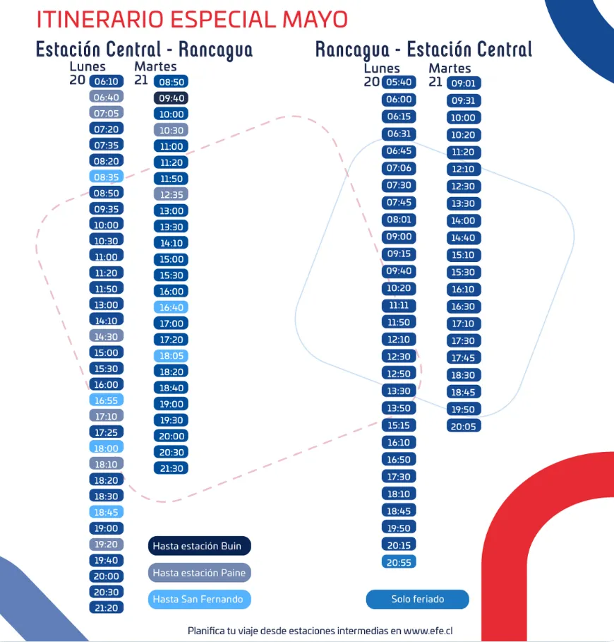 La buena noticia es que ya se encuentra operativo el servicio. En su misma cuenta de la red social antes mencionada, EFE Rancagua anunció a sus pasajeros que “el servicio está repuesto y con todo el tramo operativo, con operación de acuerdo itinerarios especiales publicados para este feriado”.