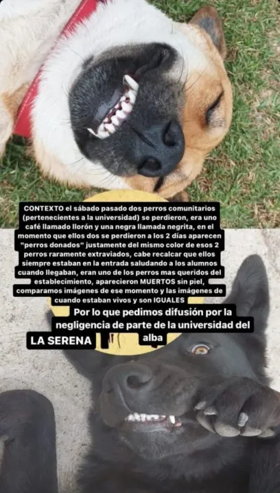 Todo comenzó ayer jueves, luego que un grupo de estudiantes de la carrera denunciara que llegaron dos cadáveres de nuevos ejemplares para estudio, los cuales compartían sus rasgos con los perros considerados como mascotas de la universidad, quienes deambulaban constantemente en la institución: “Llorón” y “Negri”.