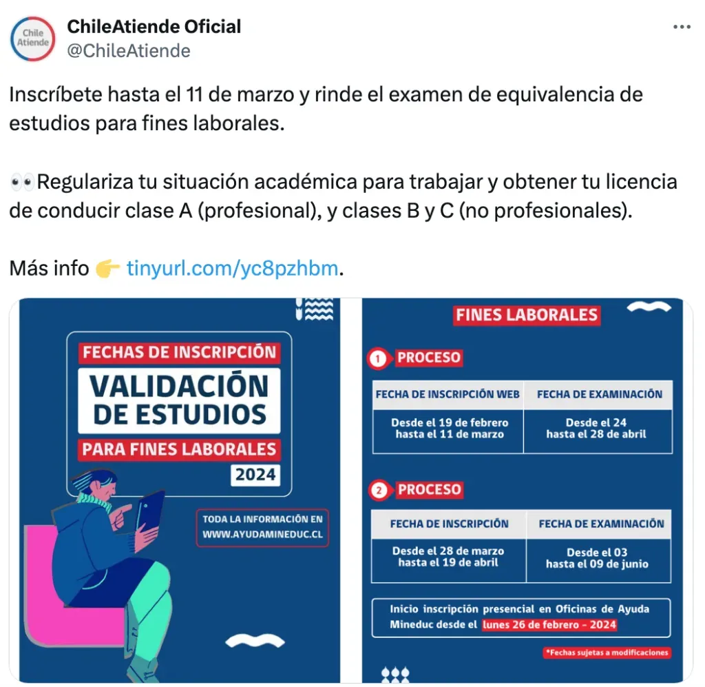 Al rendir este examen para regularizar la situación académica te permite trabajar y obtener la licencia de conducir clase A (profesional), y clases B y C (no profesionales), debido a que este trámite certifica octavo básico y cuarto medio, según detallan desde ChileAtiende.