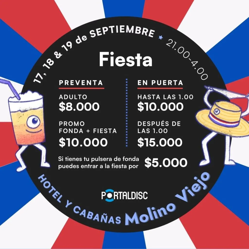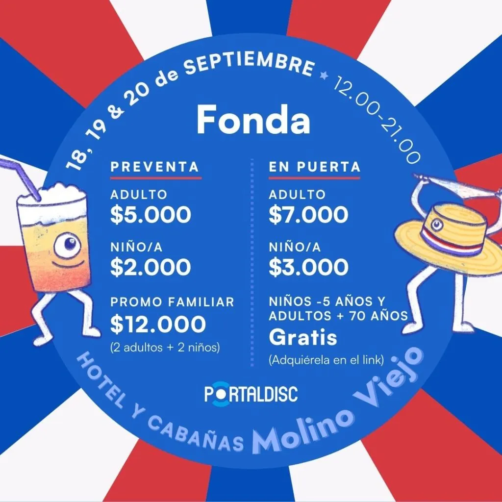 También hay diversos packs como los familiares que incluye 2 entradas de adultos y 2 niños, el pack que incluye entrada a la Fonda + Fiesta en $10.000 o entradas solo a la fiesta en $8.000.