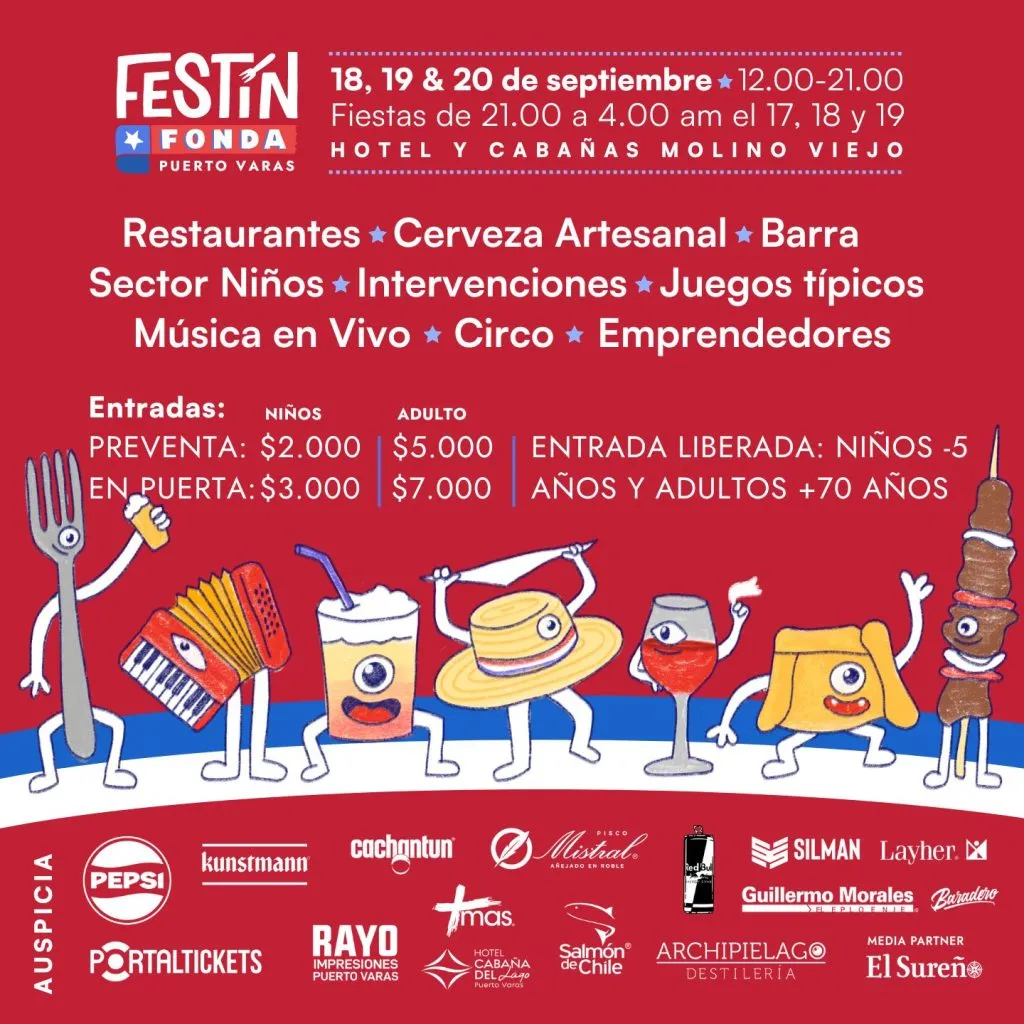 Para estas Fiestas Patrias, Festín Producciones trae a Puerto Varas la Festín Fonda, un evento que promete convertirse en el mejor panorama dieciochero de la región, del 17 al 20 de septiembre.