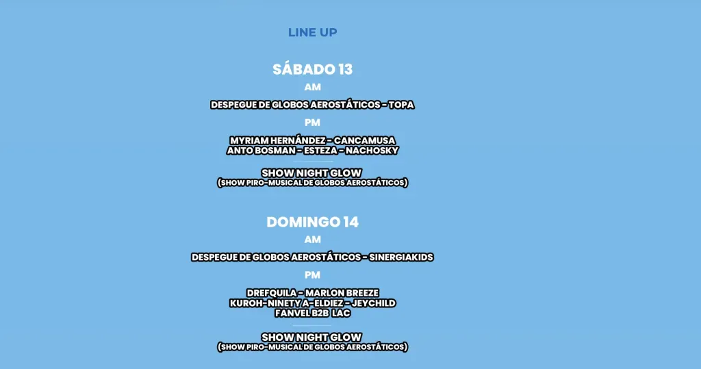 Line Up Festival del Globo 2024