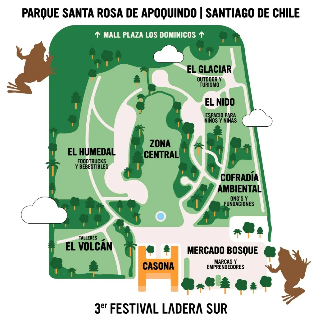El Festival Ladera Sur 2024 se llevará a cabo los días 15, 16 y 17 de noviembre en el Parque Santa Rosa de Apoquindo, un espacio que combina naturaleza y cultura, ideal para un evento de esta magnitud.