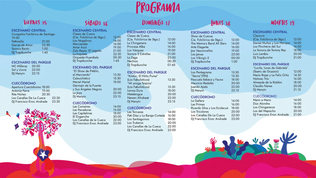 Puedes revisar la programación completa de las Fondas del Parque O’Higgins a continuación: