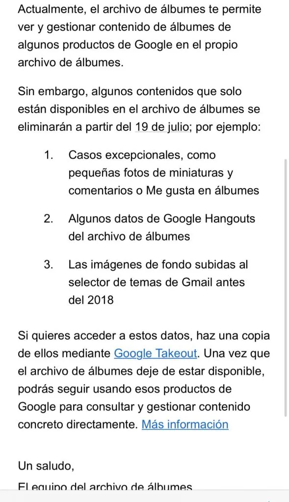 Es importante mencionar que este cierre no afecta ni a Google Fotos ni a Google Drive debido a que son dos servicios completamente diferentes.
